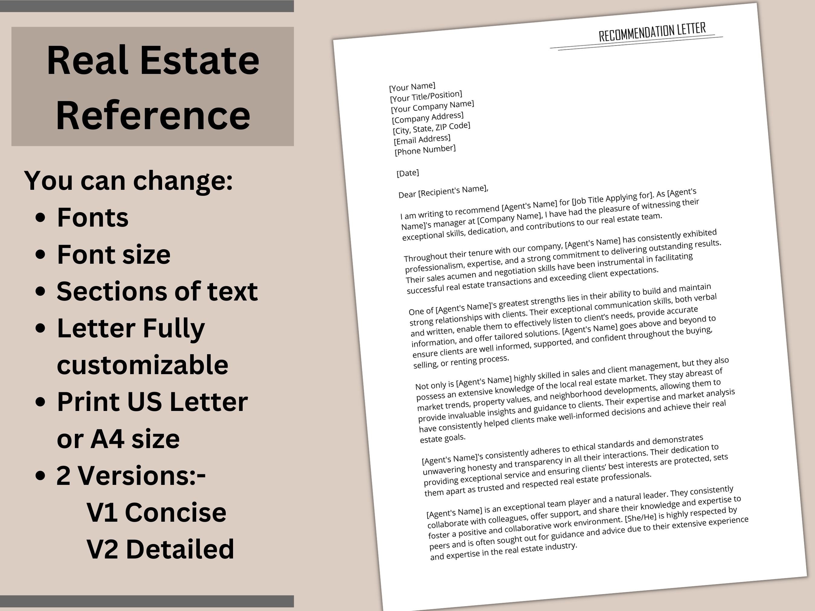Real Estate Agent Recommendation Letter Capture The Character Etsy